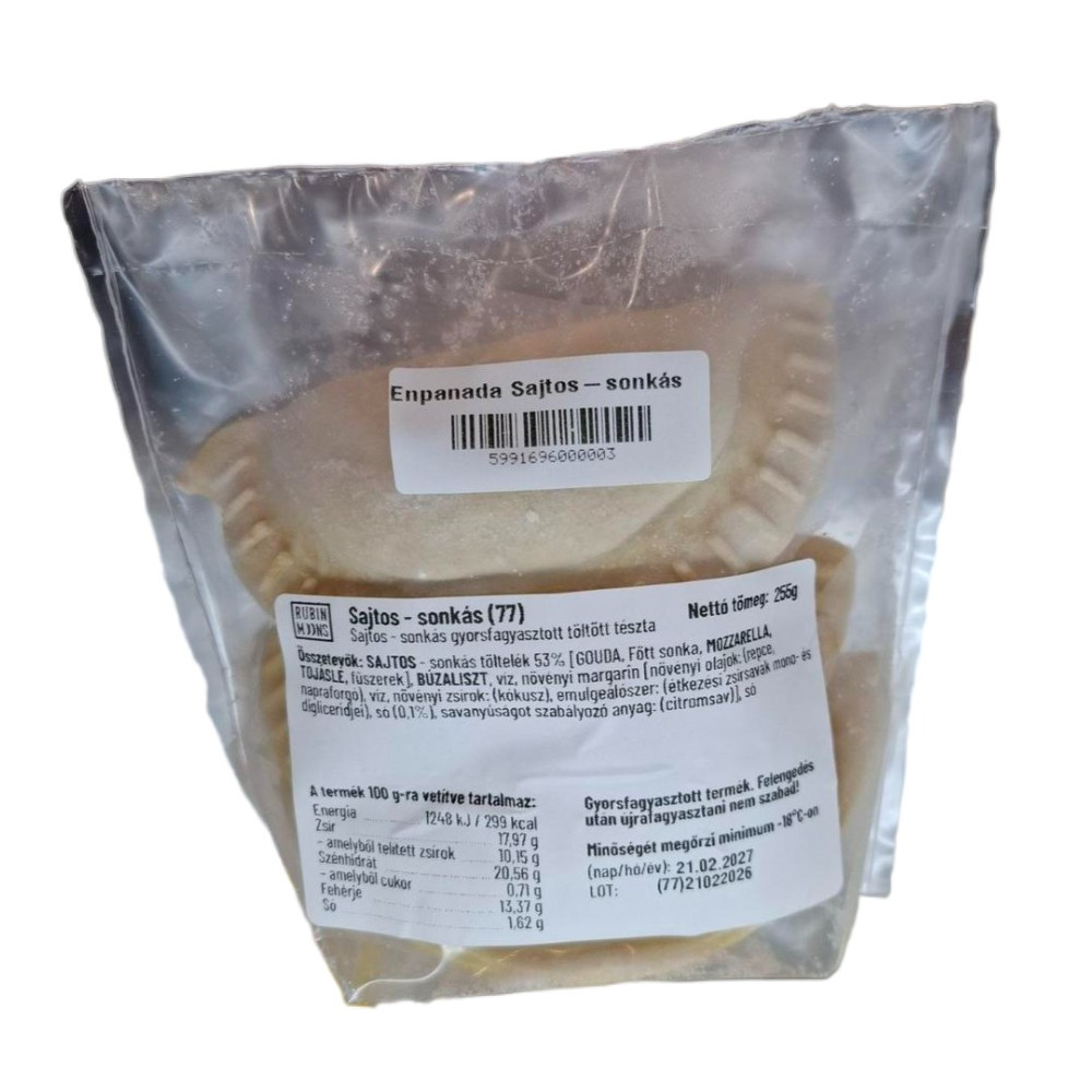 • Termék neve: Sajtos-sonkás gyorsfagyasztott töltött tészta