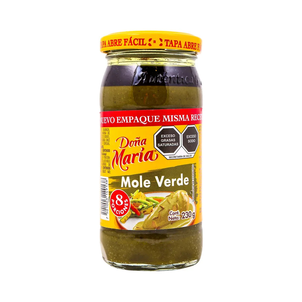 A Doña María Mole Verde egy hagyományos paszta, amely lehetővé teszi a mexikói konyha egyik legfrissebb és legaromásabb mole változatának gyors elkészítését. A vörös mole-hoz képest zöld színű, íze pedig frissebb, gyógynövényes jellegű, magvak, zöld chili és fűszerek jegyeivel.